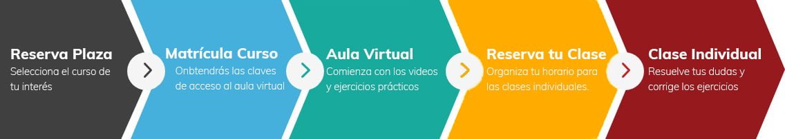 A pesar de la distancia física, todos los cursos mantienen siempre un trato próximo entre alumno y profesor, similar al de nuestras clases presenciales, con tutorías individuales, que podrás ir reservando en tu horario, siendo una parte esencial del curso, necesaria para tanto para revisar ejercicios como resolver dudas, o comentar ideas.